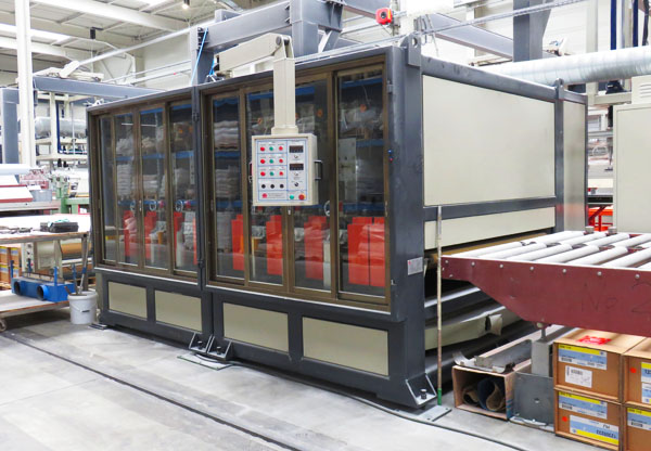 該系列設備有干拋或油拋兩種加工方式。經過轉速極低的砂輥,通過調整砂輥向下的壓力,使套在砂輥外部的環形砂帶在金屬表面拉出直紋。經過機組加工的直絲HLHair-Line)金屬板材,表面紋理清晰,縱向2米長度內直紋紋理的偏斜不超過2mm。