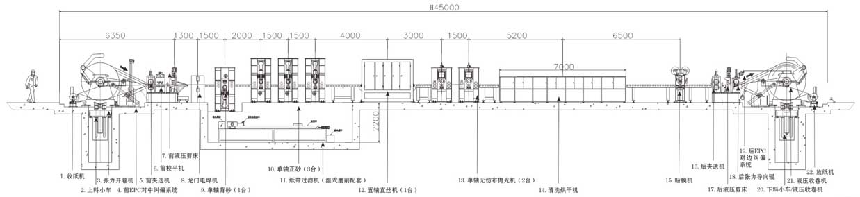 整線收放卷采用特殊張力系統(tǒng),通過(guò)張力牽引卷材控制速度,調(diào)整簡(jiǎn)單,張力穩(wěn)定。其單機(jī)架單磨頭的重型框架,旨在吸收震動(dòng)防止其傳播到材料表面。其穩(wěn)定的工作部件可支持超過(guò)25m/s的主軸轉(zhuǎn)速,并輸出強(qiáng)大的功率寬比。每條砂帶平均9000米的磨砂長(zhǎng)度大大減少了用戶(hù)的生產(chǎn)成本。